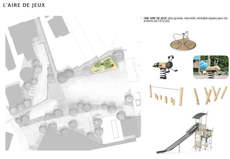 - L'aire de jeux pour enfants (3-12 ans) sera plus grande qu'à l'heure actuelle et clôturée.