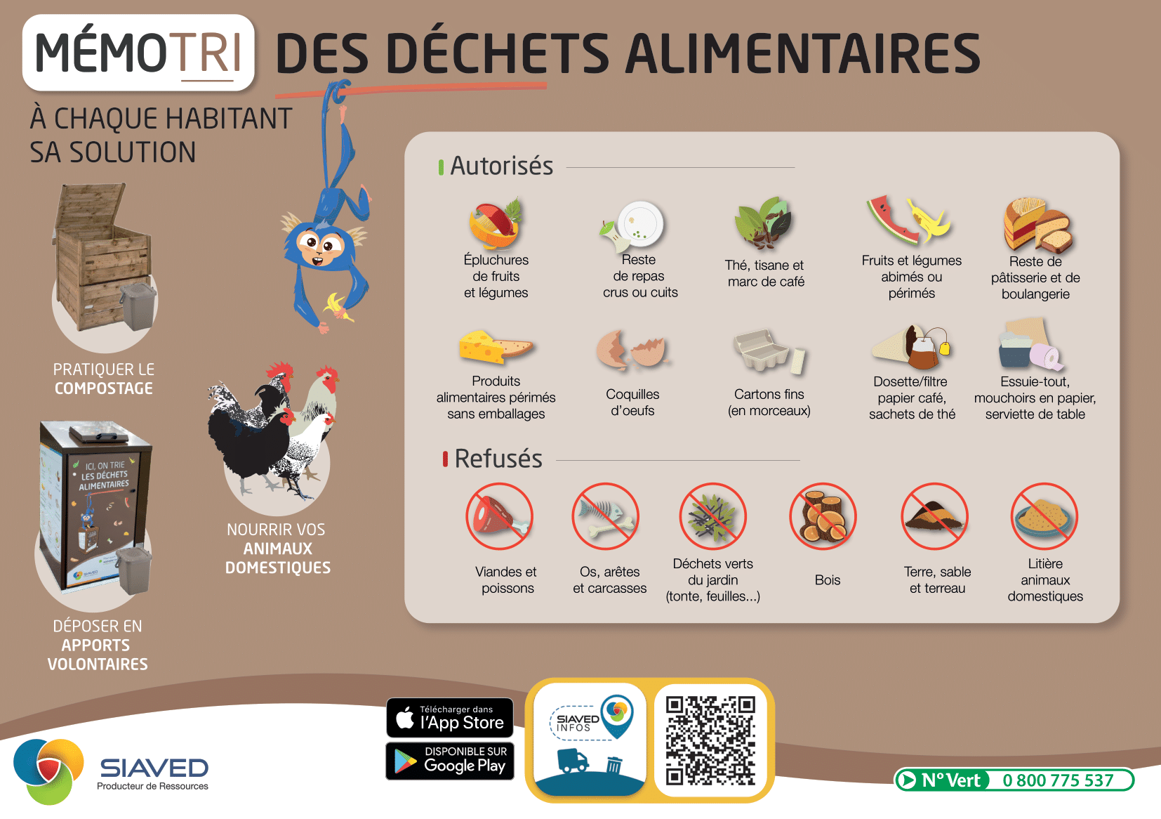 La loi anti-gaspillage adoptée en février 2020 prévoit l'obligation du tri à la source de ces biodéchets depuis le 1er janvier 2024. C'est à la structure disposant de la compétence "collecte des déchets", en l'occurrence le SIAVED, qu'il revient d'organiser la mise en place de ce tri, en lien étroit avec les communes.